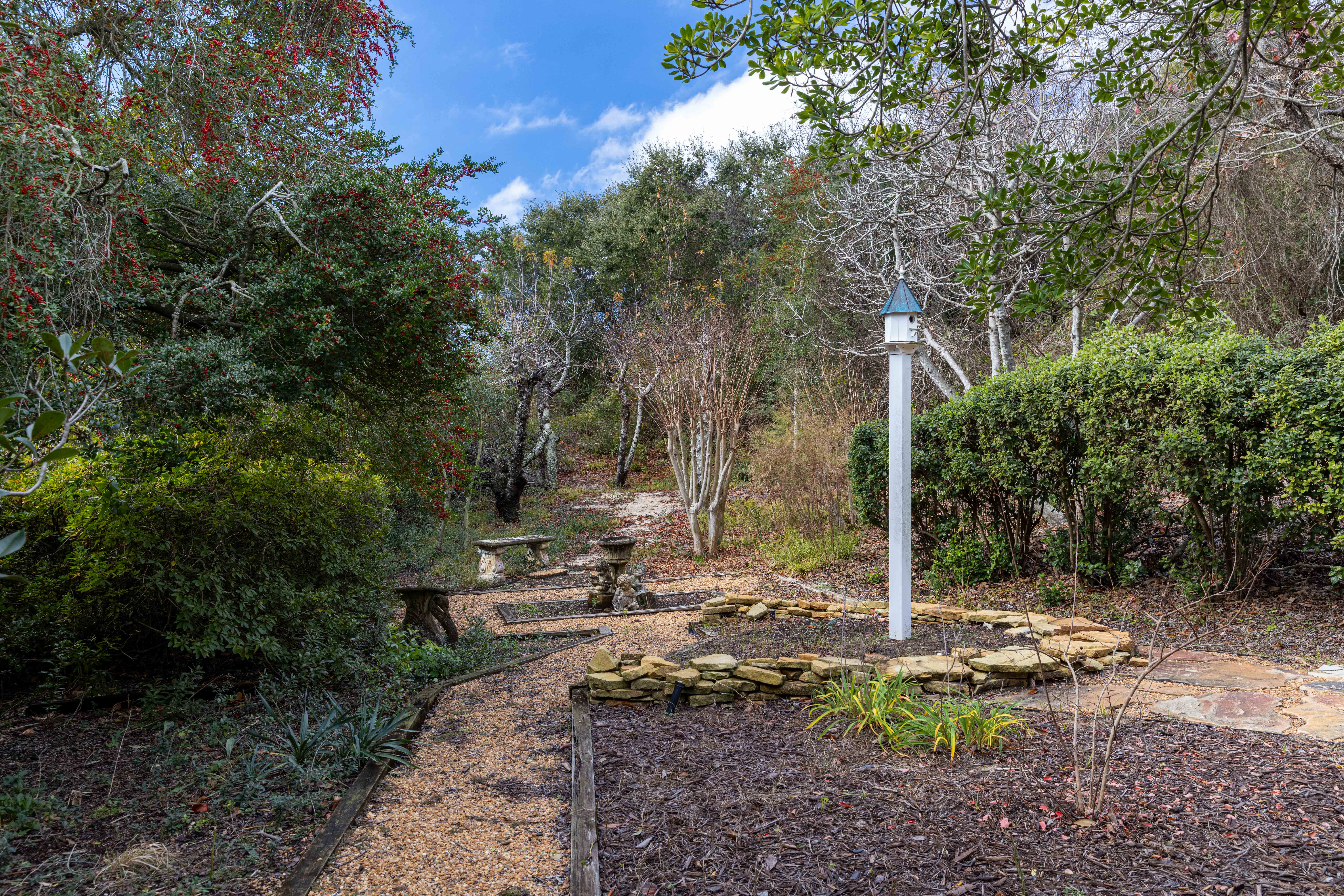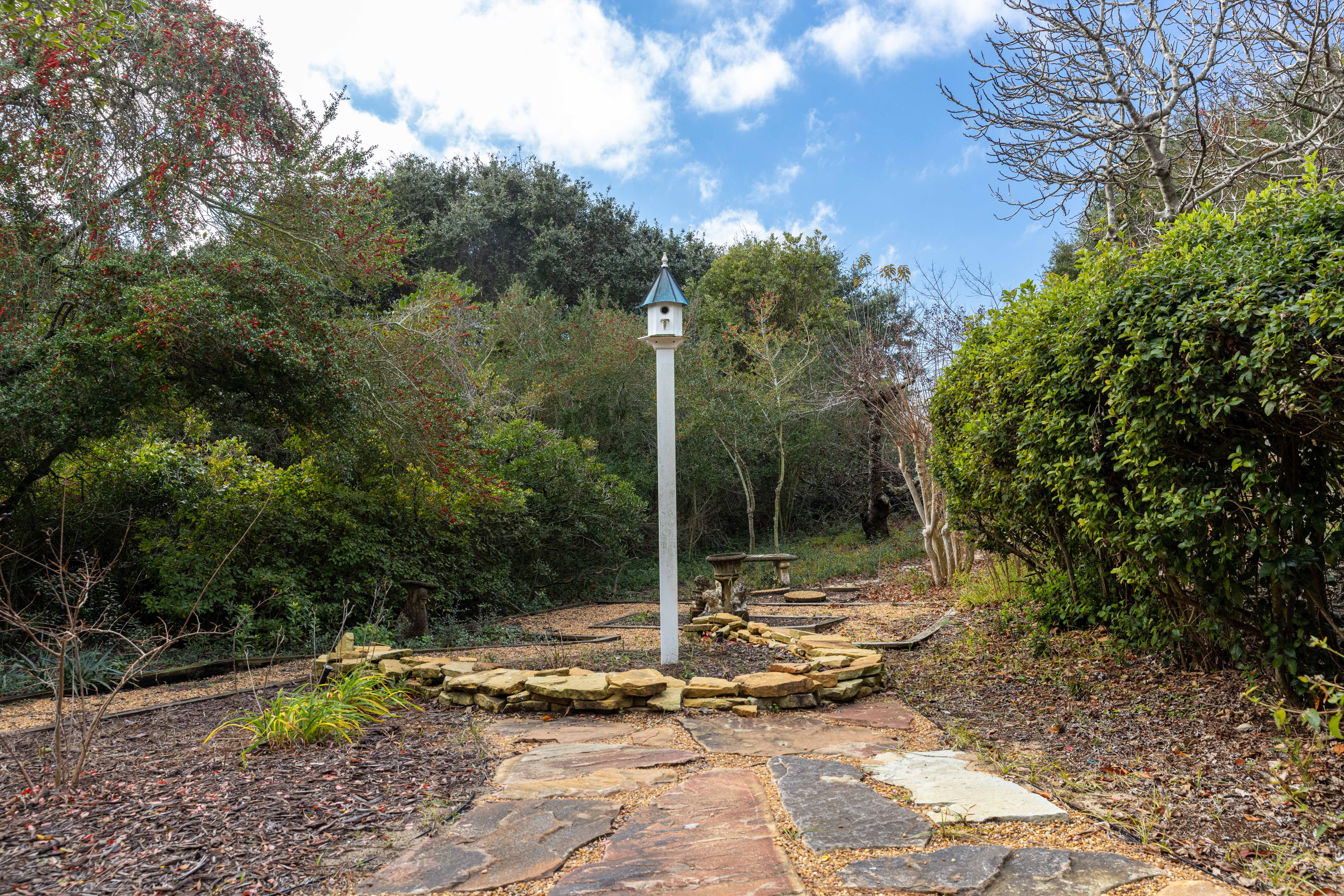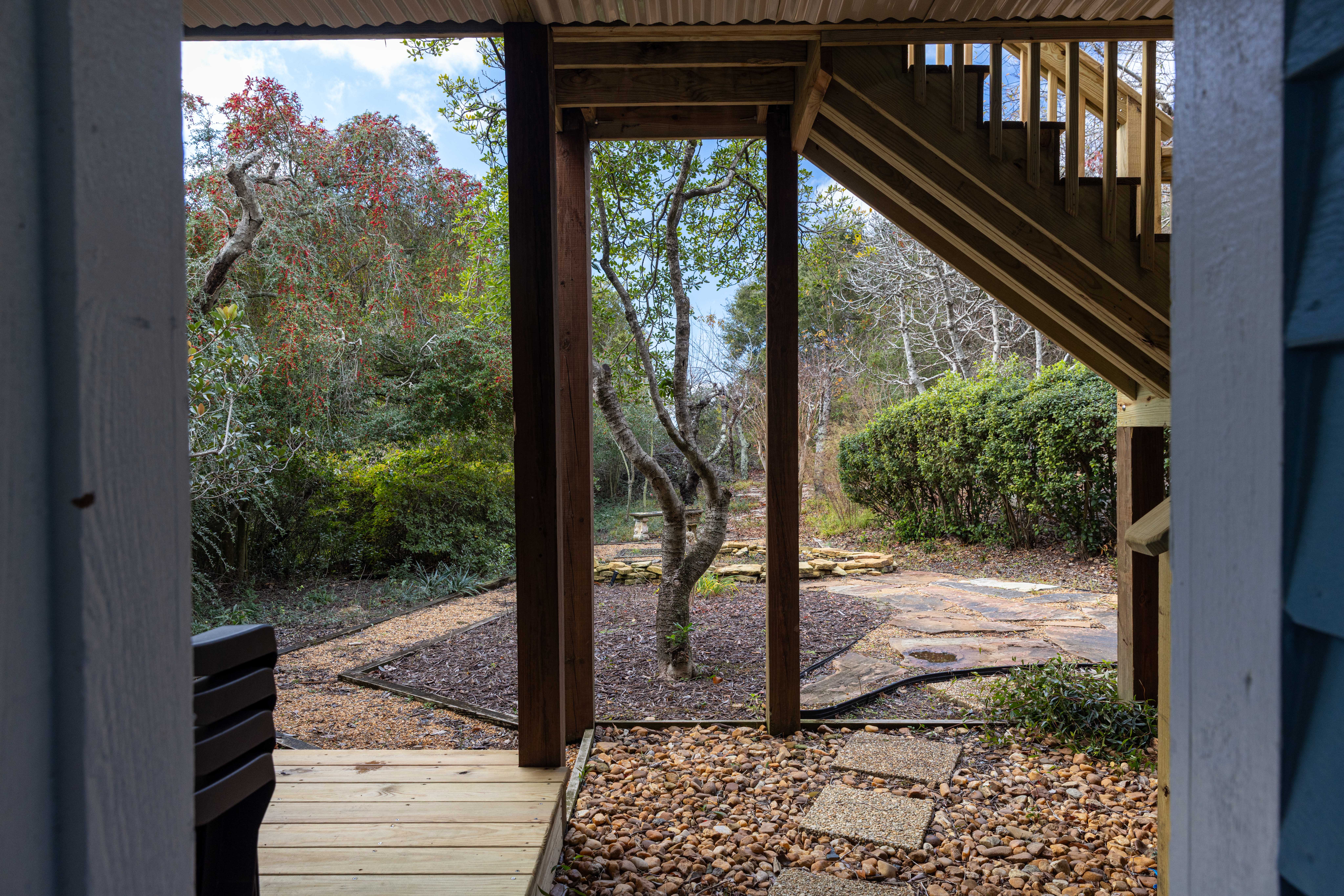 Outside: Carport, Enclosed Outside Shower, Garden