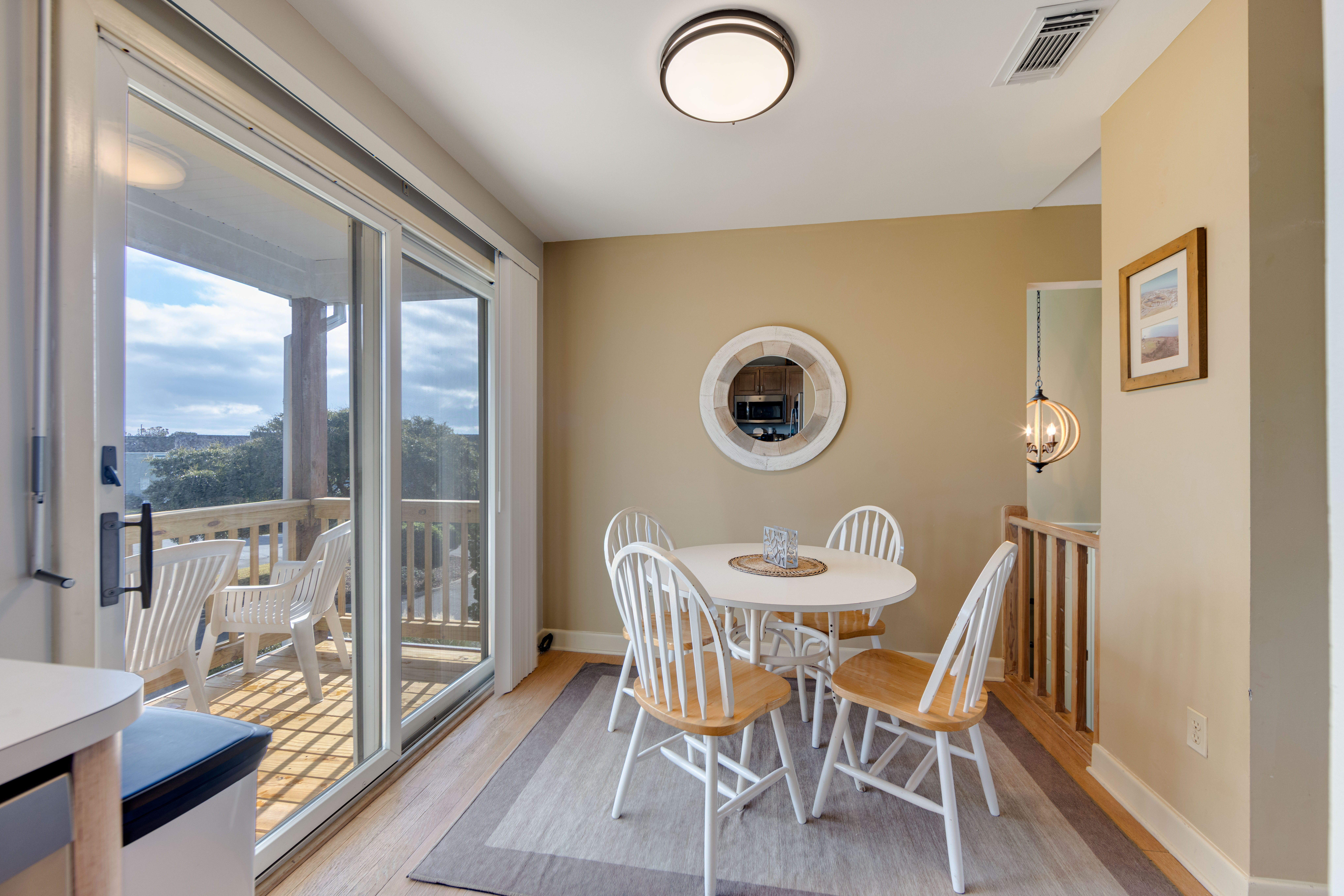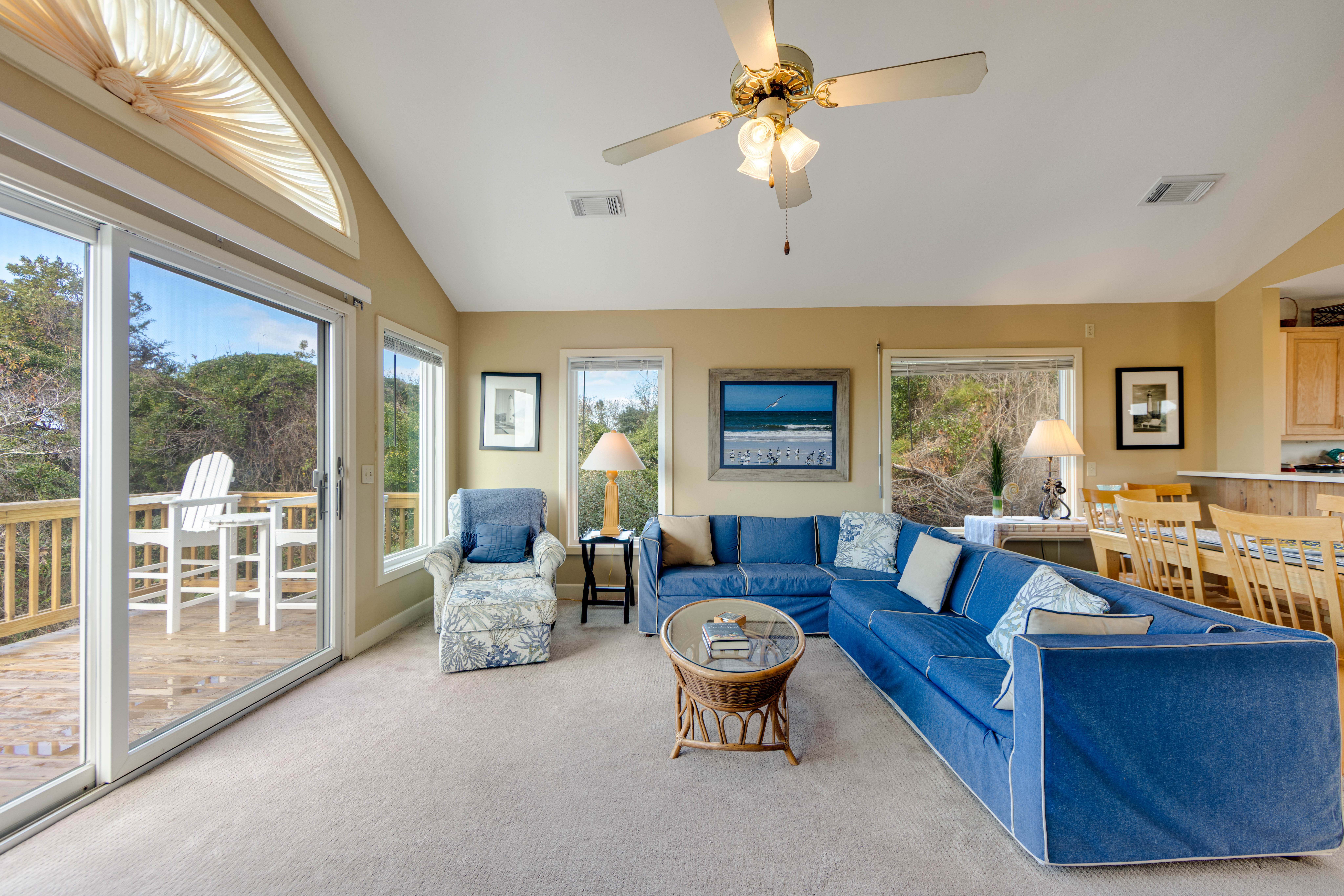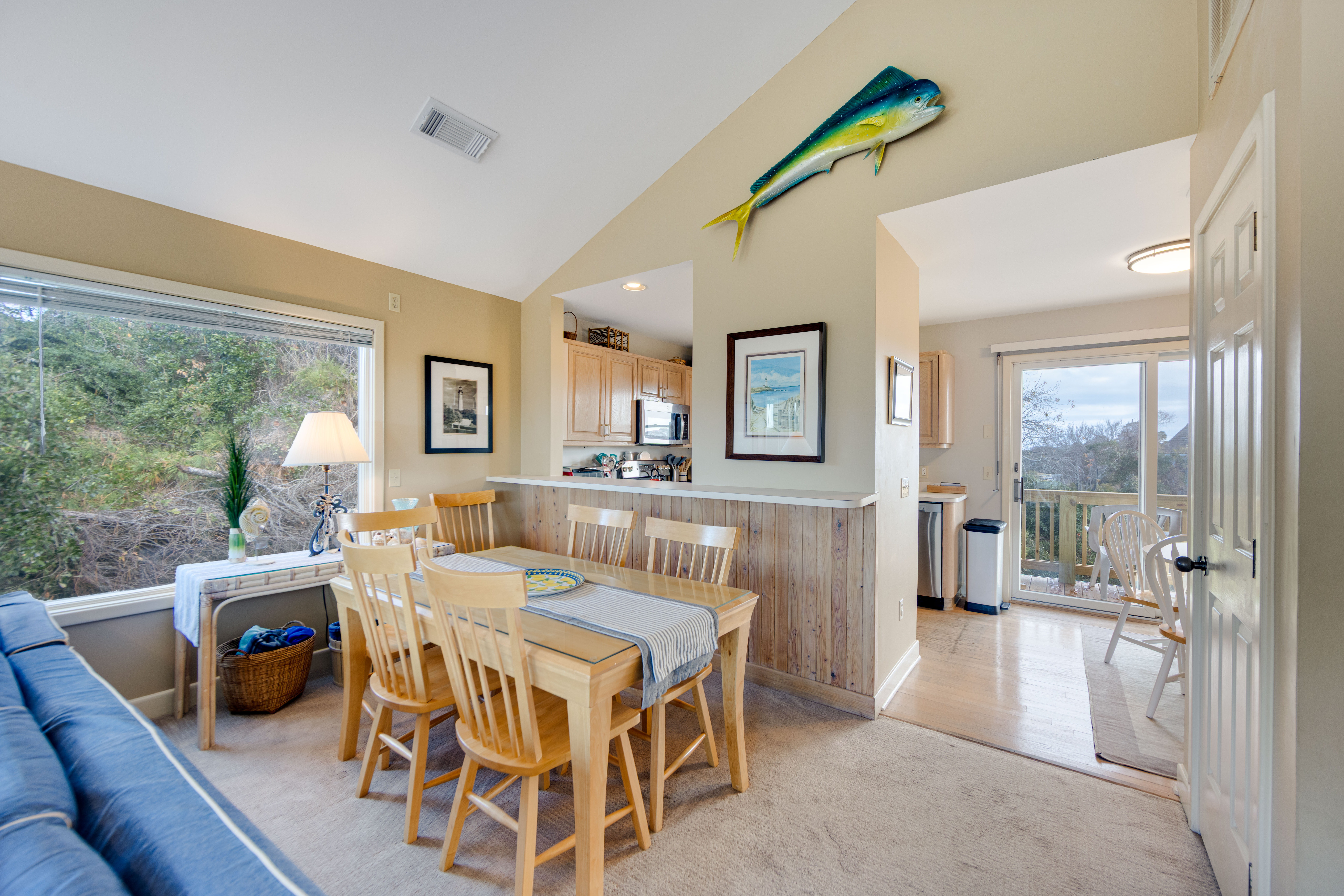 Marsh Tide Retreat is nestled along the greens of the Village at Nags Head Golf Links — a private, peaceful escape where the coastal breeze meets the calm rhythm of fairway life. This 3-bedroom, 2.5-bath gem is meticulously maintained and tastefully decorated, blending comfort and coastal style with an easygoing charm. The carport opens to a tranquil zen garden, setting the tone for the serenity that flows throughout the home.