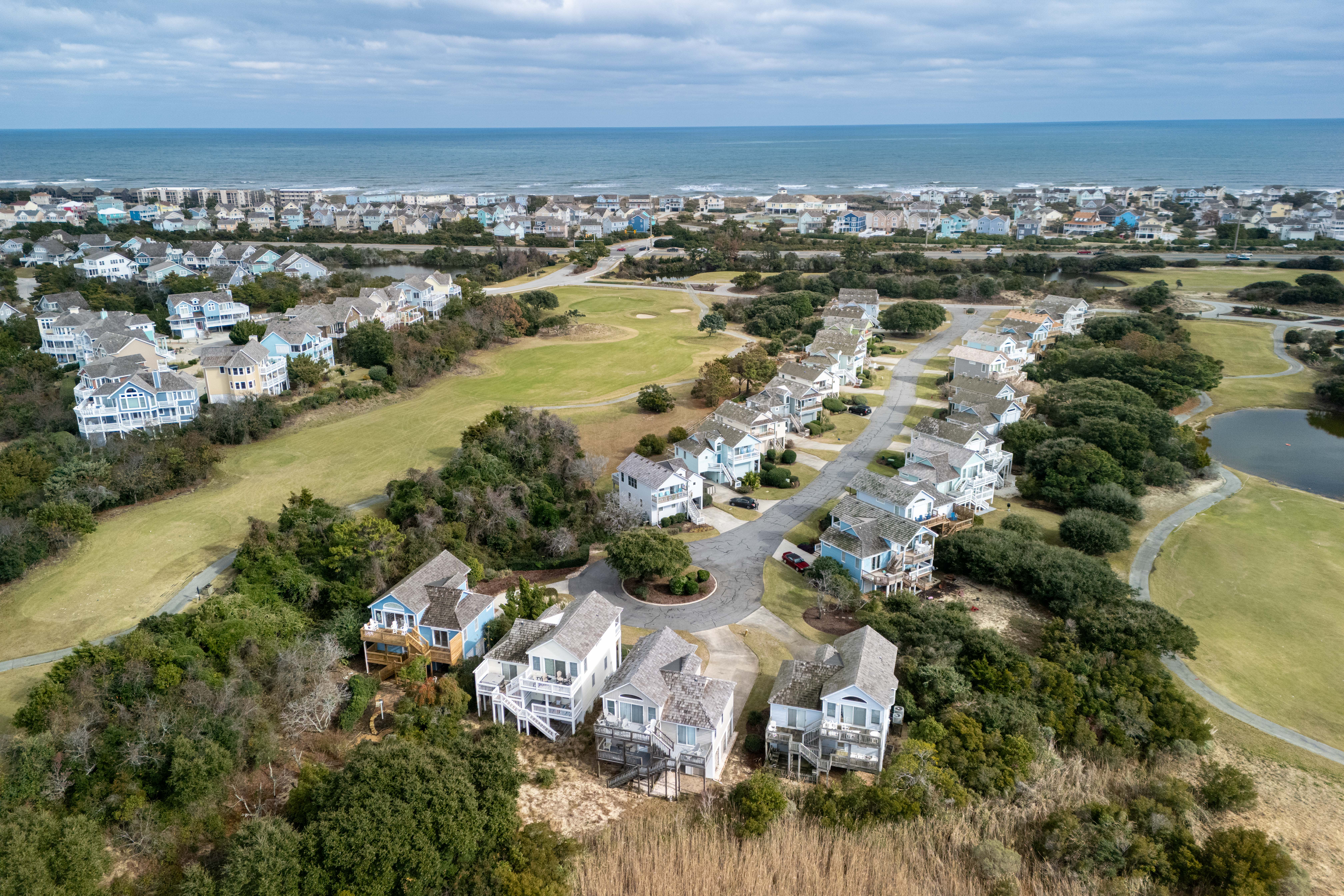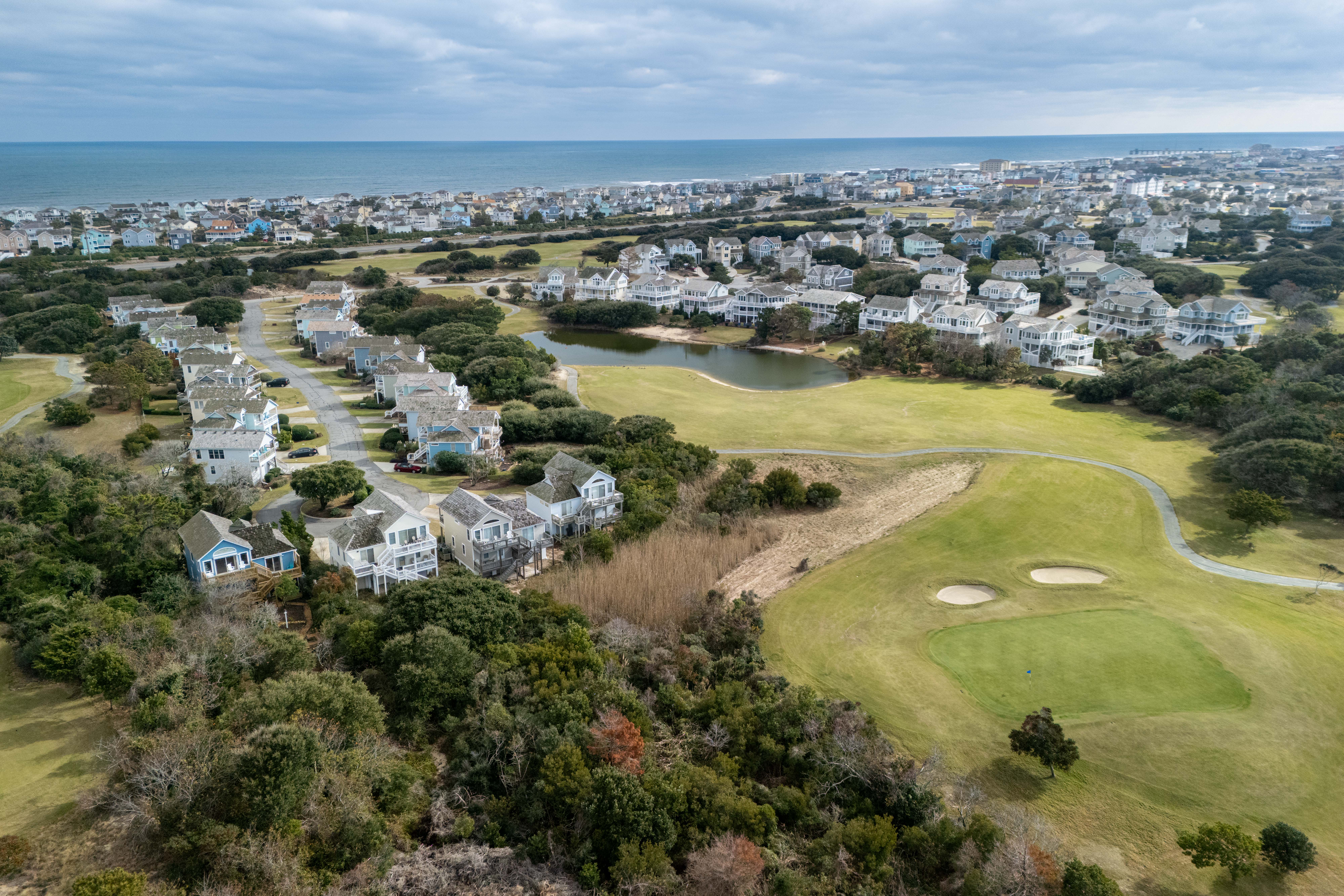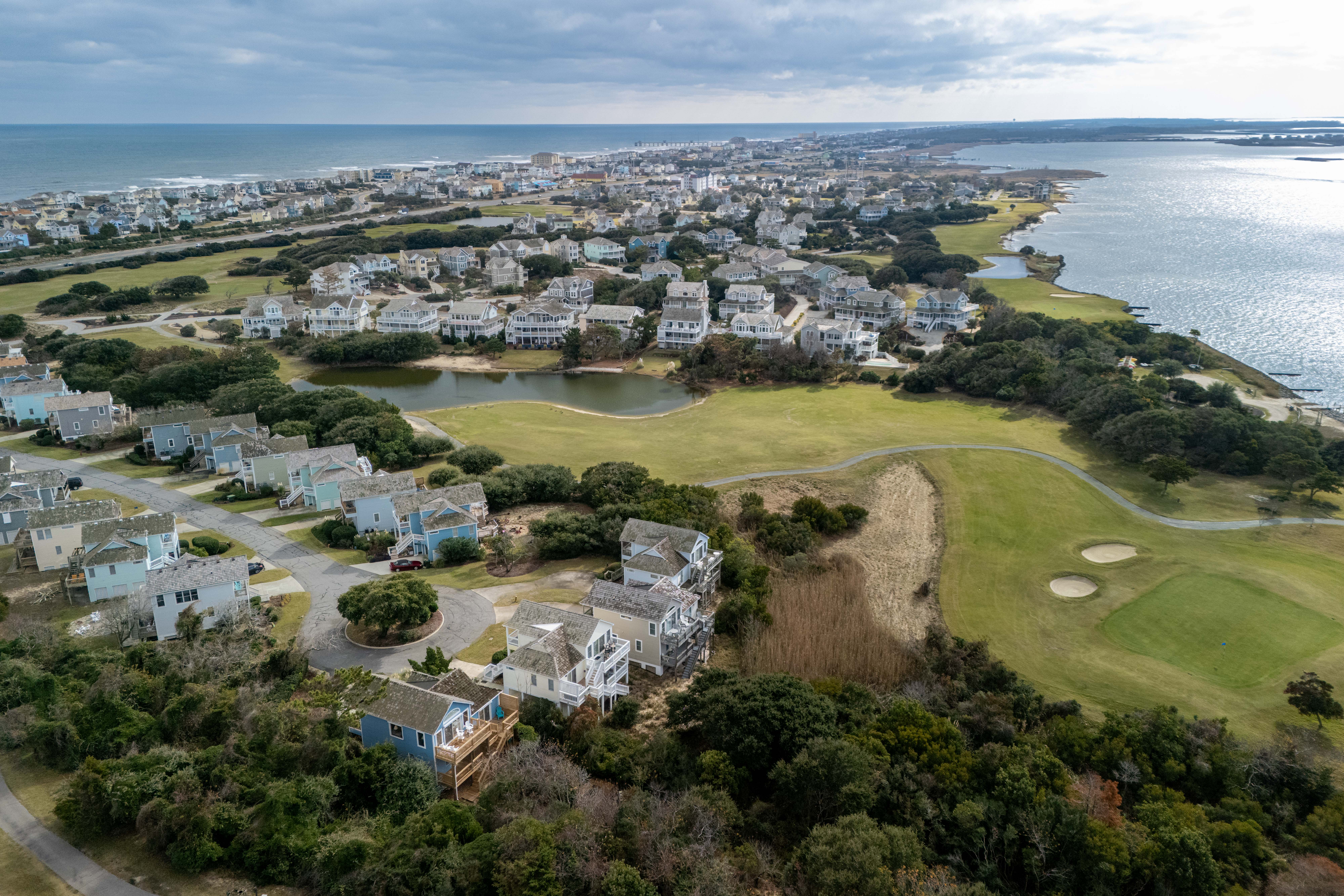 You'll enjoy access to the oceanfront clubhouse, which features a restaurant and lounge, pickleball courts, bathhouses, outdoor showers, and a community pool, and you can cruise over to the beach in minutes (don't forget your golf cart). When you're ready to explore, you're just a short drive from the charming shops and restaurants of Manteo, central Nags Head favorites, and the outlet mall for a little retail therapy. Whether you're chasing calm or a good round of golf, this quiet neighborhood delivers both—with the kind of sunsets that make you forget to check your phone.