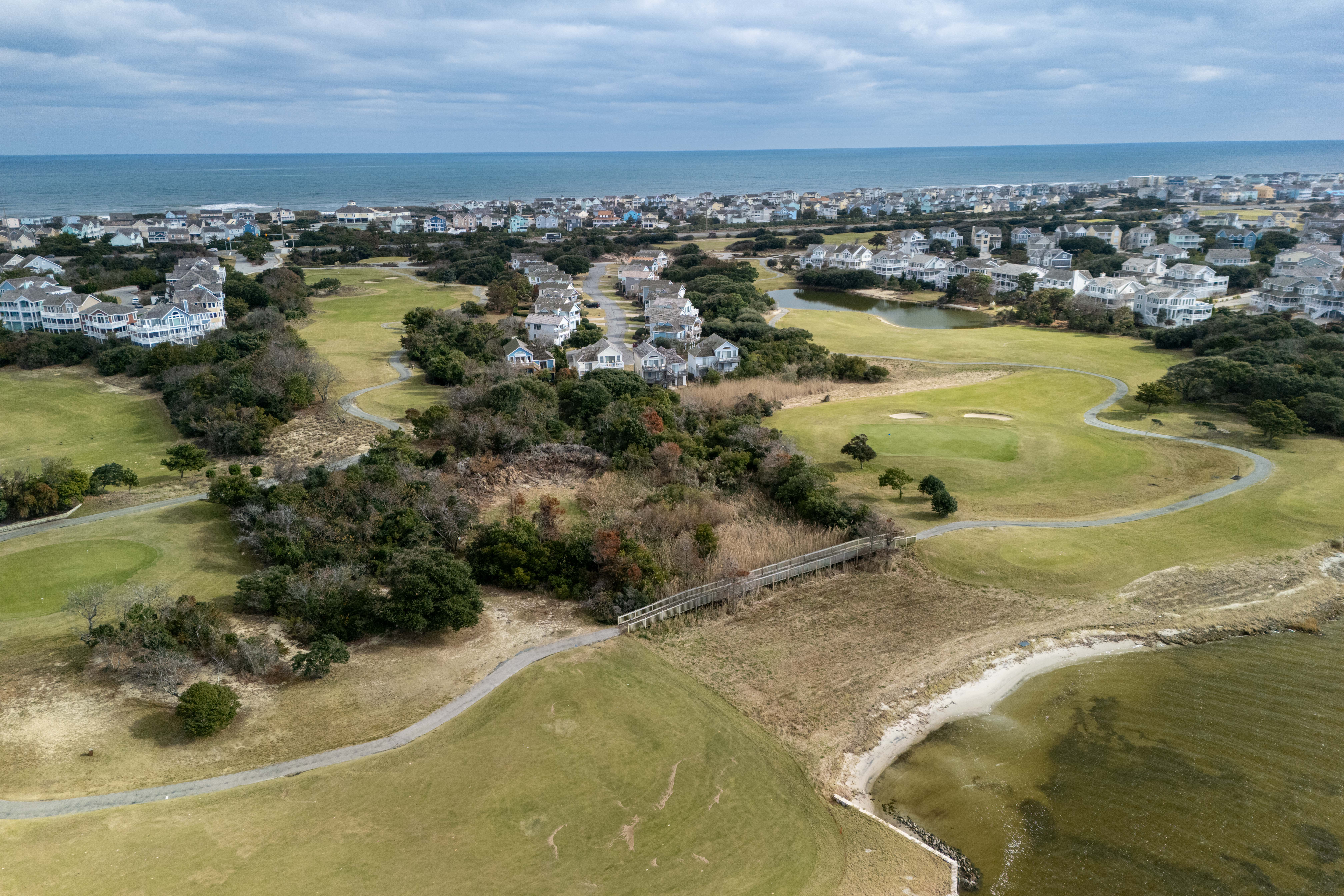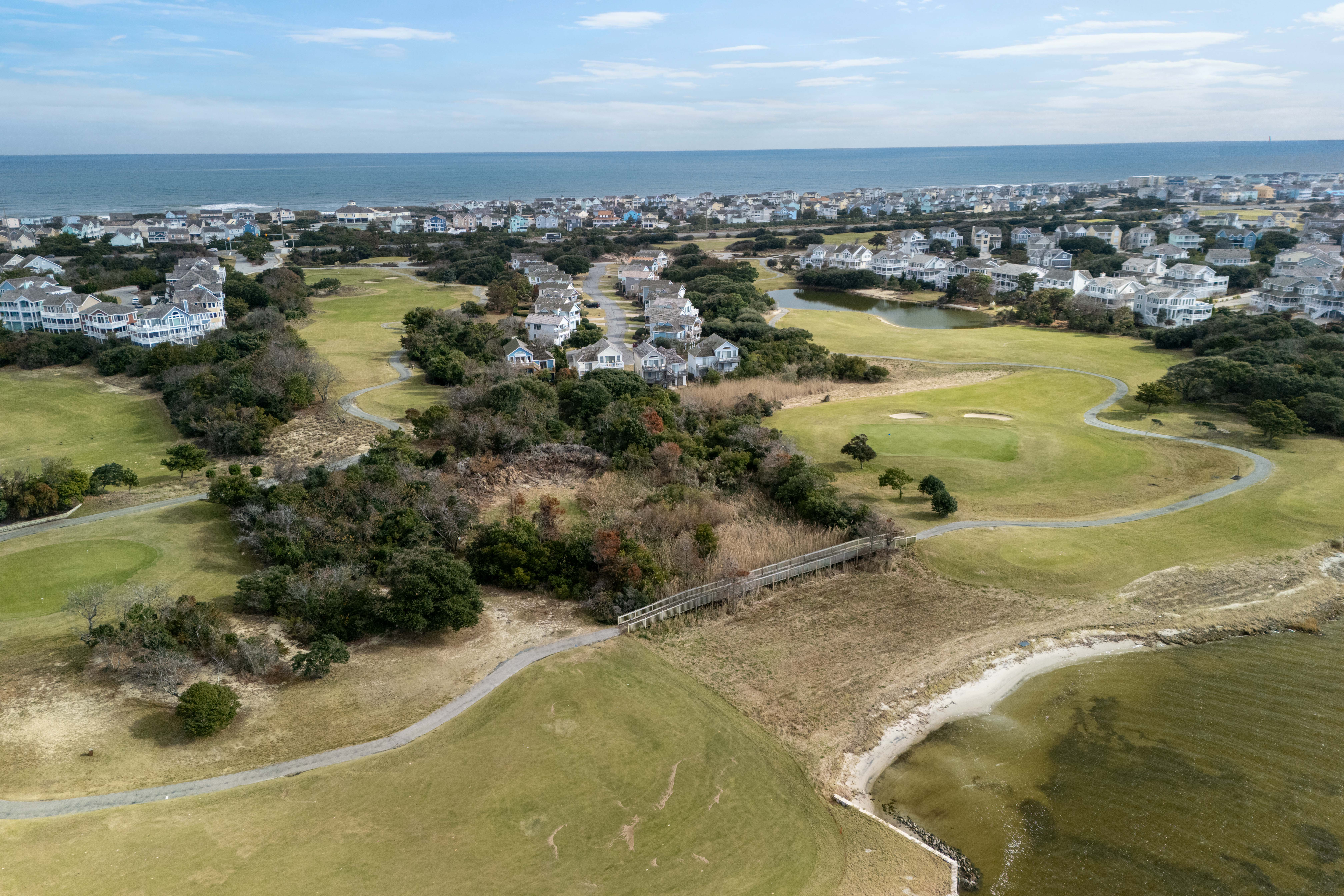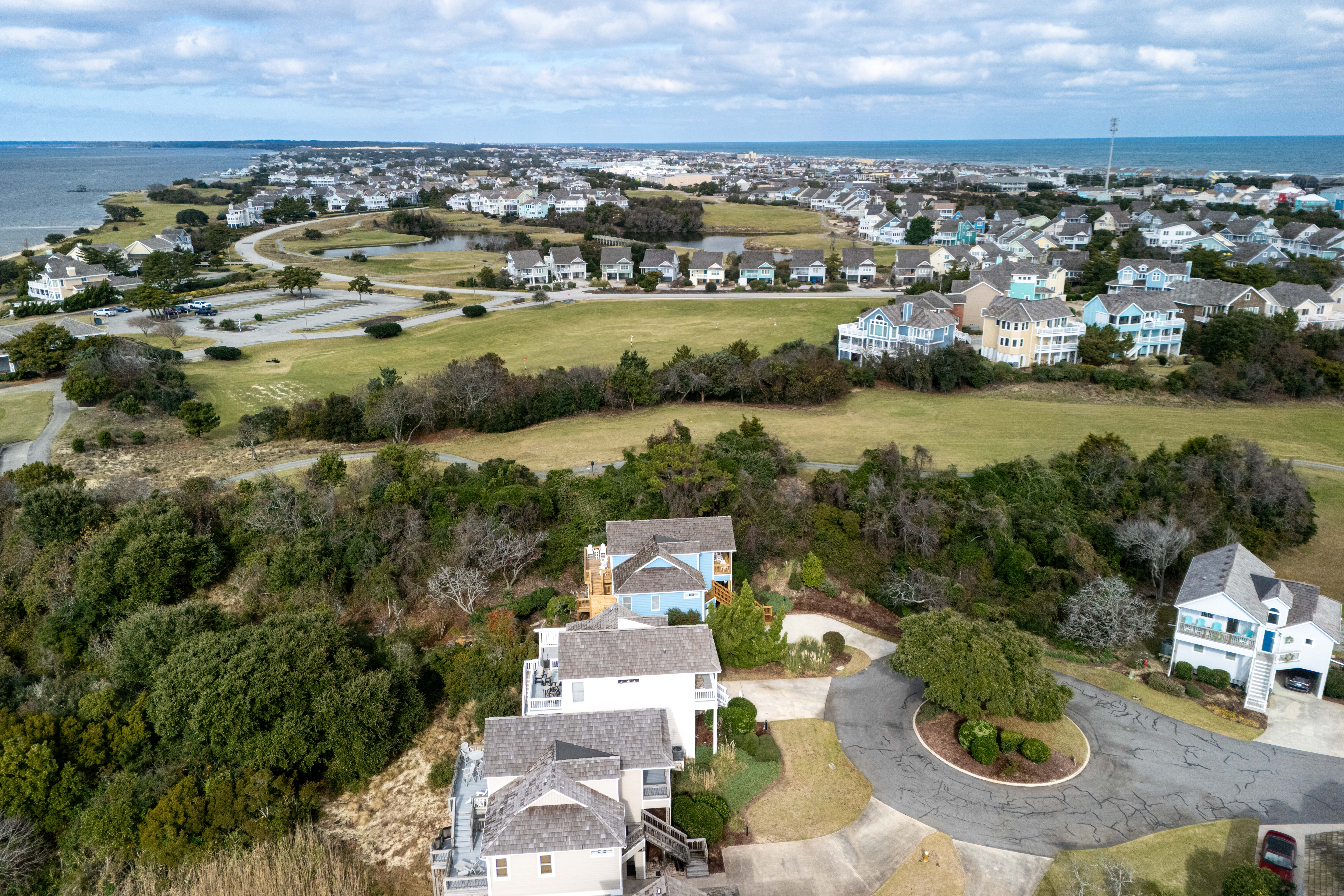 You'll enjoy access to the oceanfront clubhouse, which features a restaurant and lounge, pickleball courts, bathhouses, outdoor showers, and a community pool, and you can cruise over to the beach in minutes (don't forget your golf cart). When you're ready to explore, you're just a short drive from the charming shops and restaurants of Manteo, central Nags Head favorites, and the outlet mall for a little retail therapy. Whether you're chasing calm or a good round of golf, this quiet neighborhood delivers both—with the kind of sunsets that make you forget to check your phone.