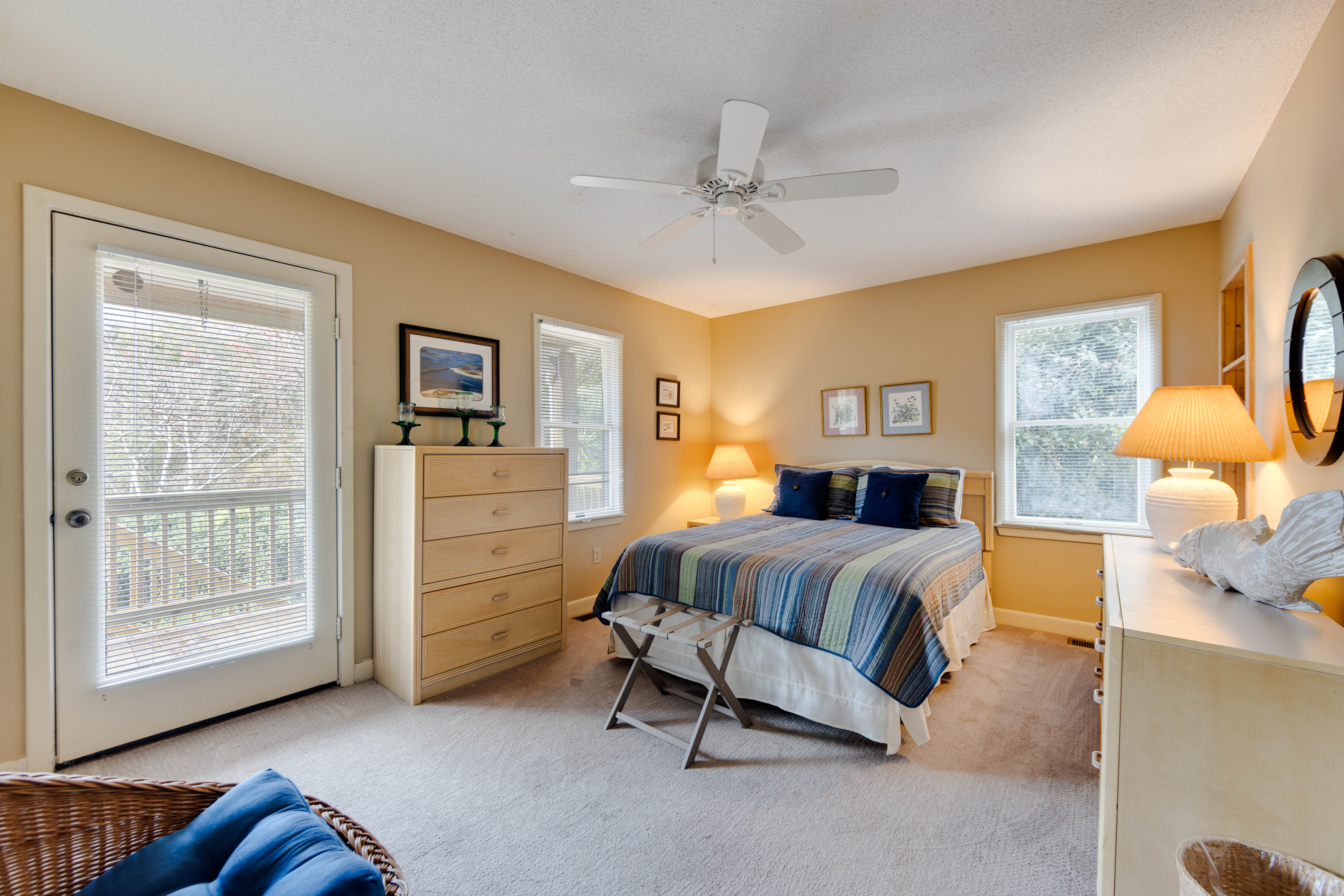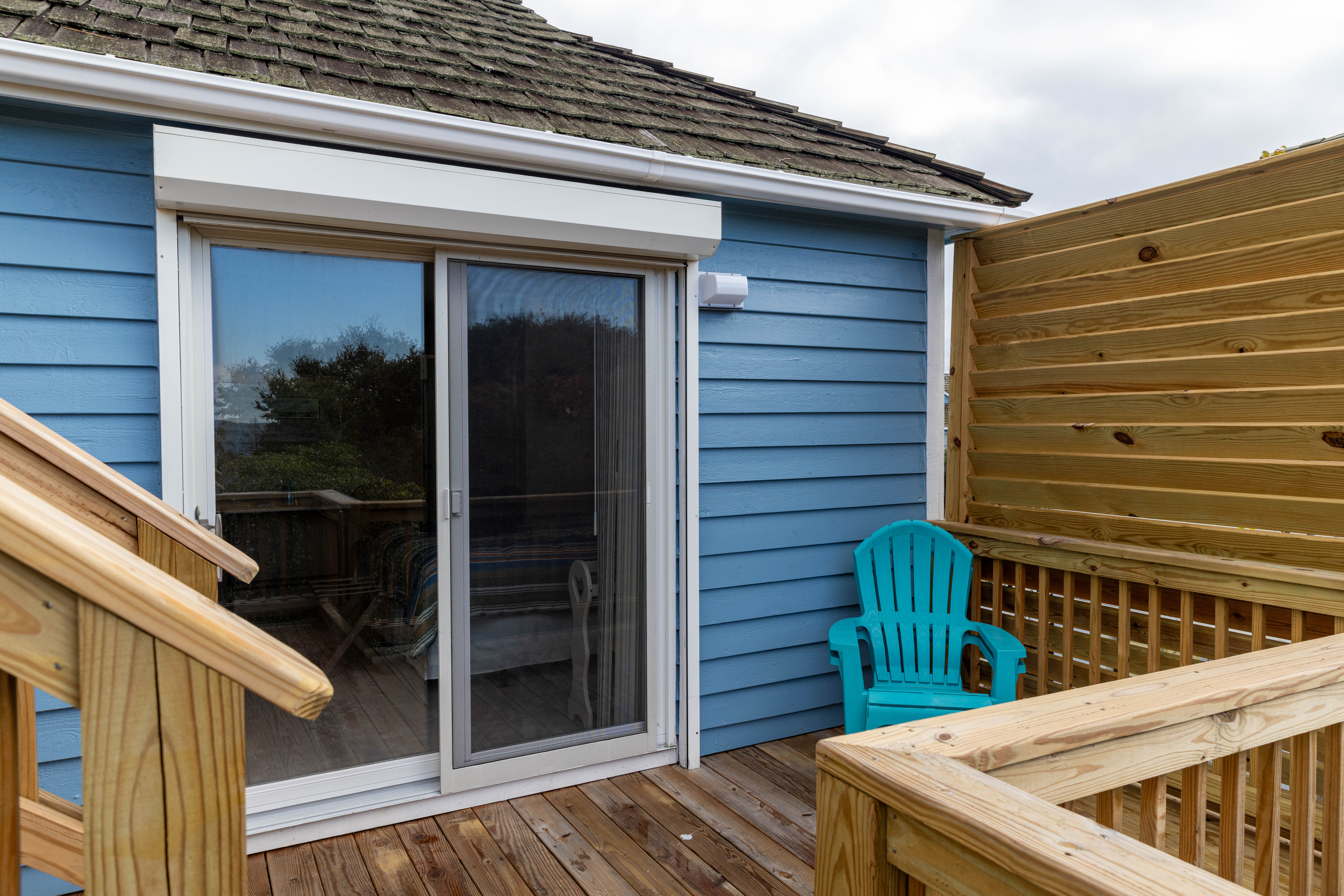 Second Level: Half bath, queen bedroom with private deck and bathroom.