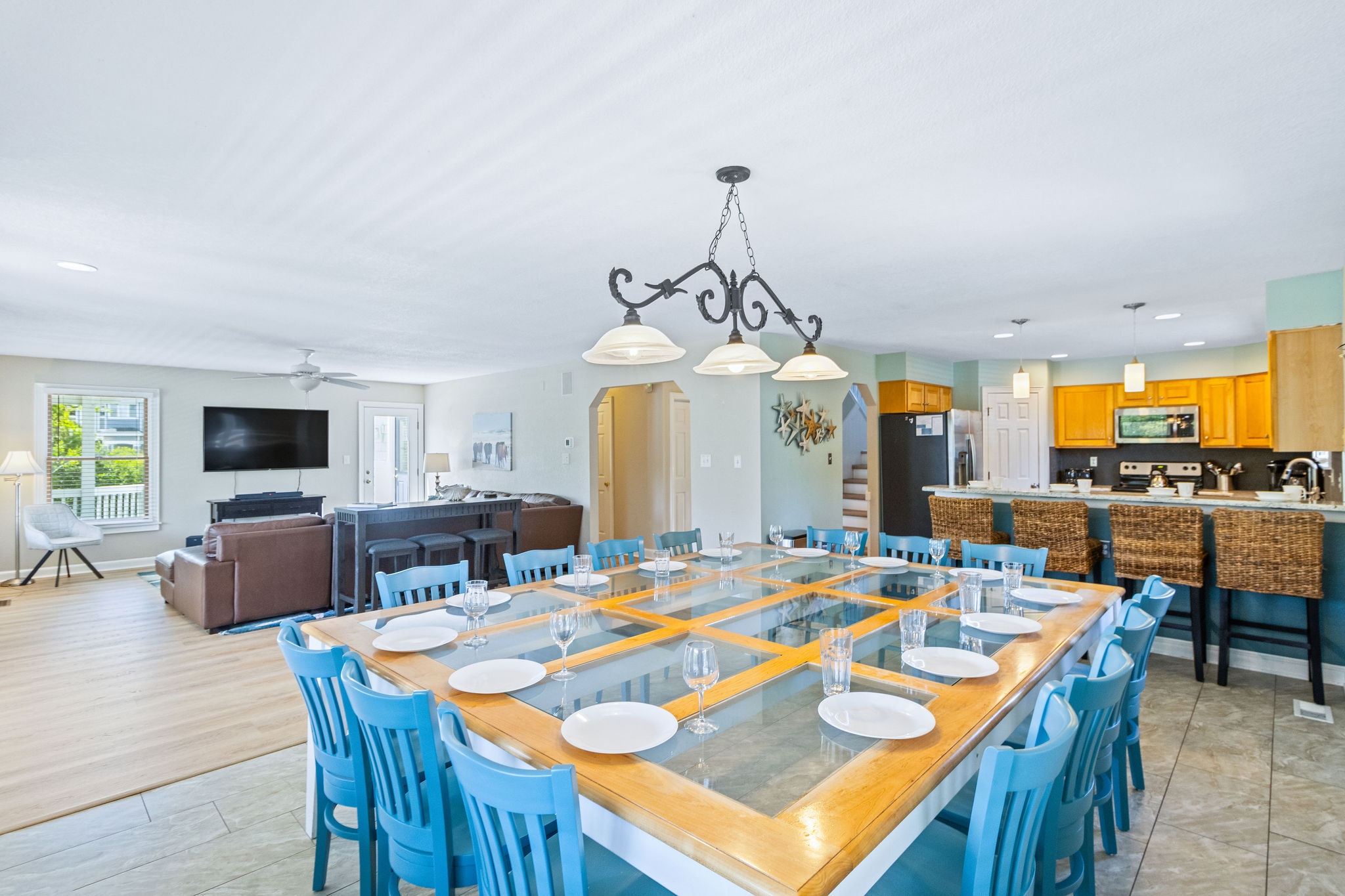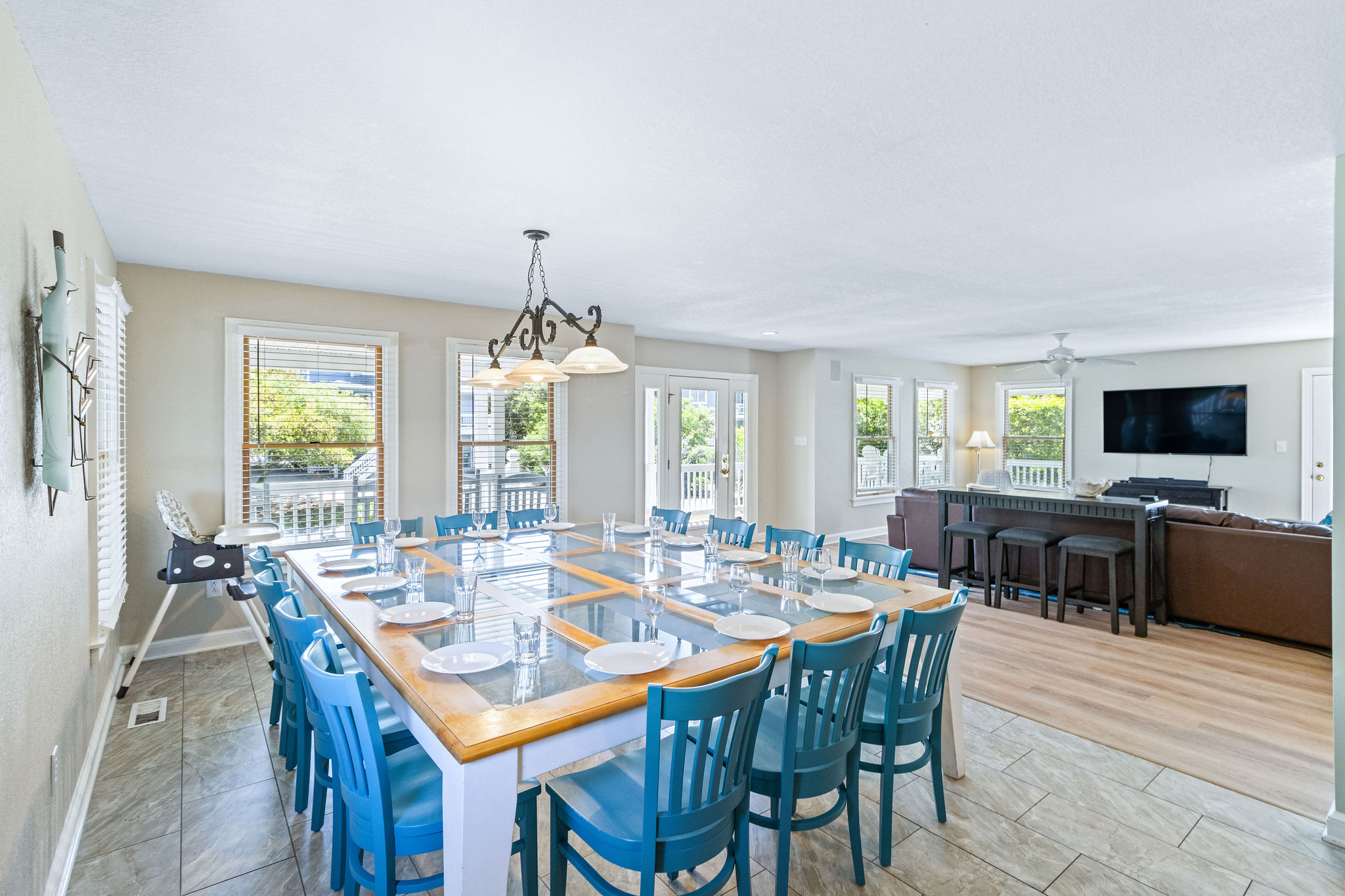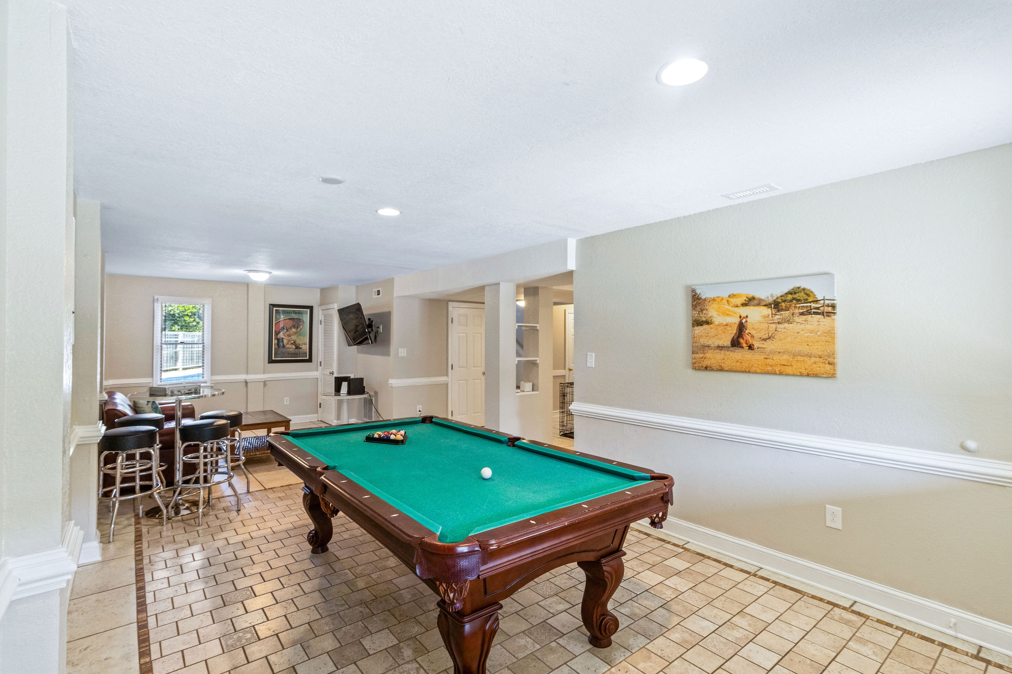 Mid Level: Living room w/large flat screen HDTV, kitchen w/breakfast bar and stainless appliances. Dining room w/table for 14. Half bath (1) Master w/king w/flat screen HDTV.