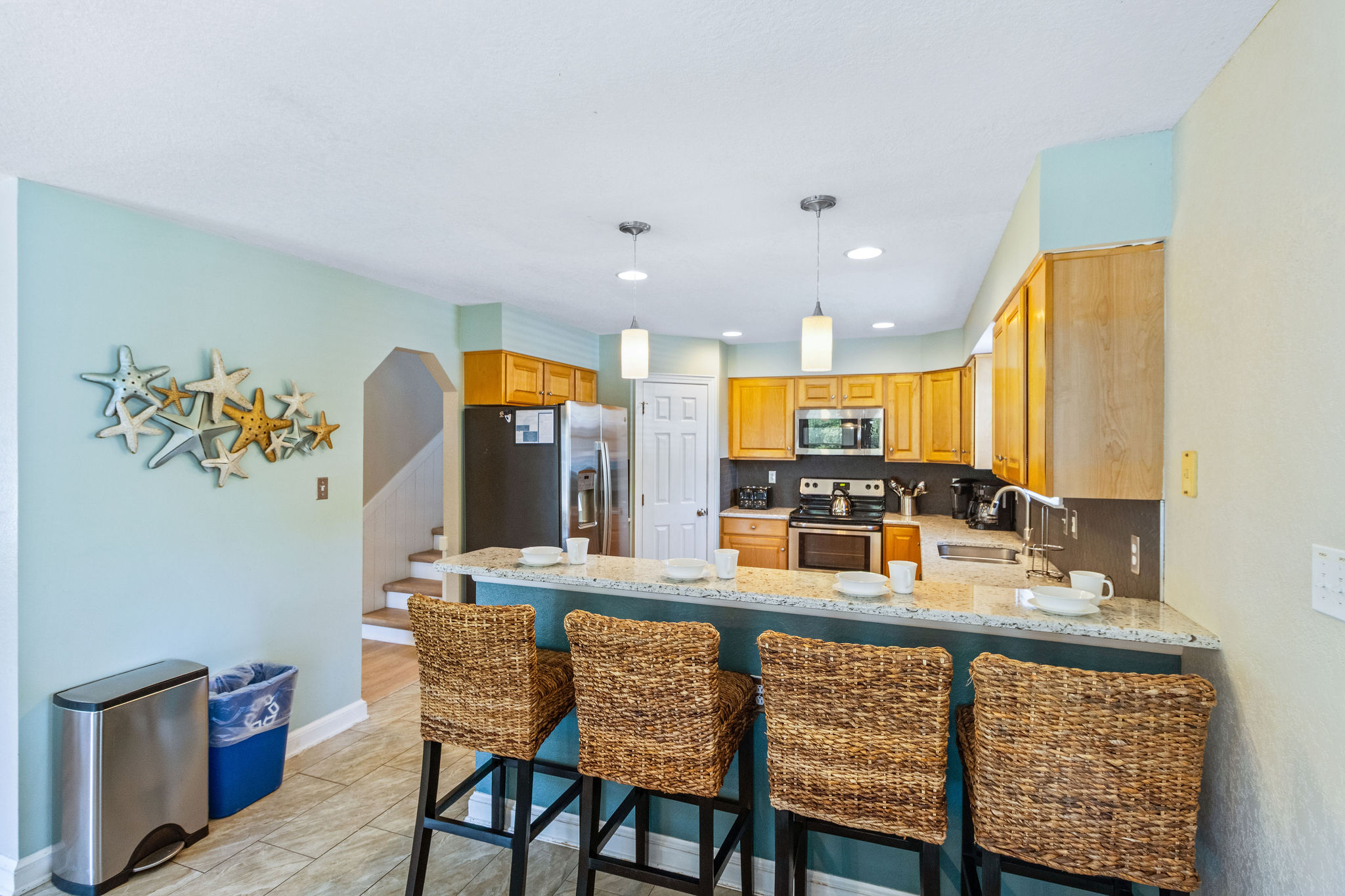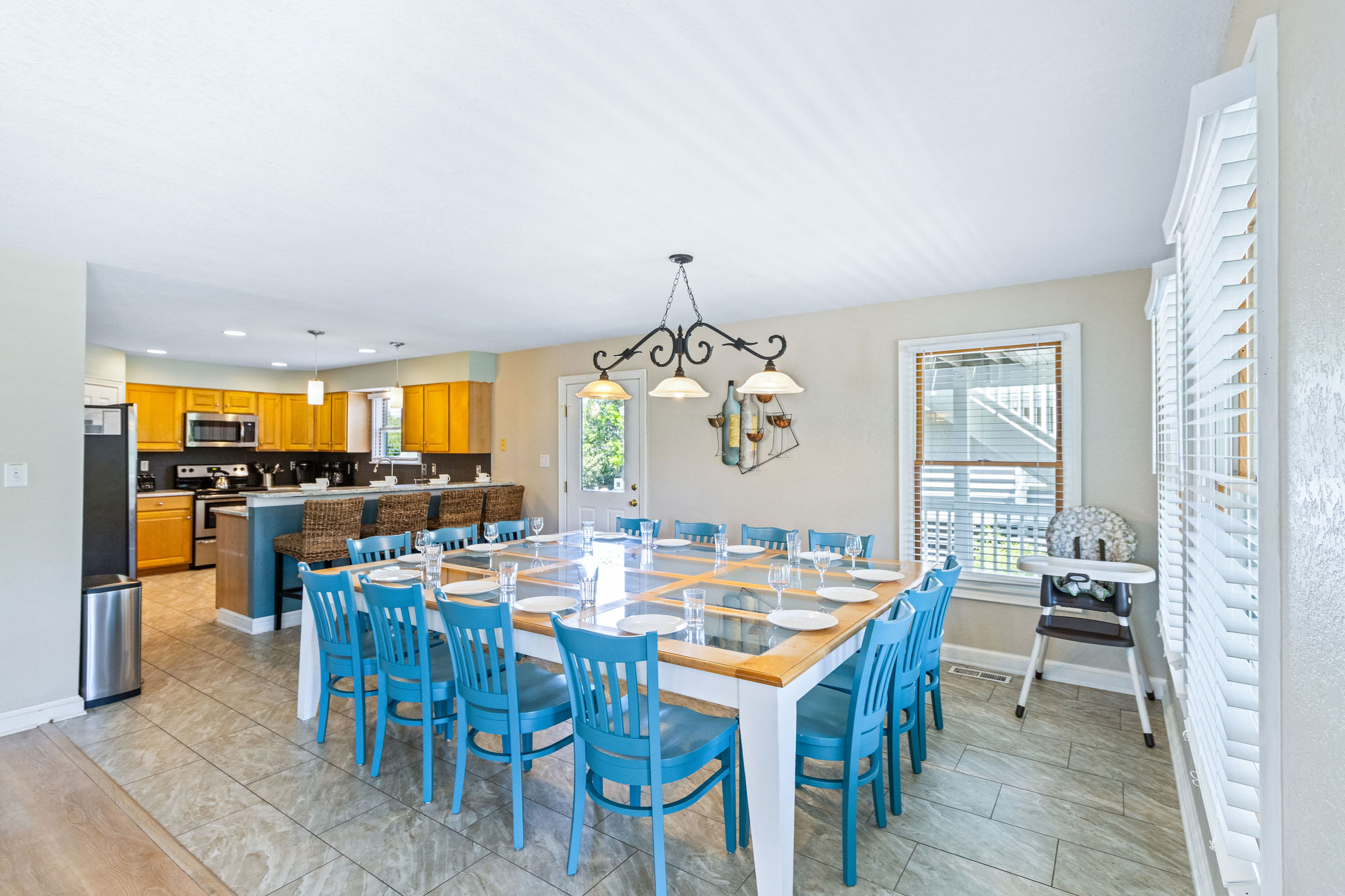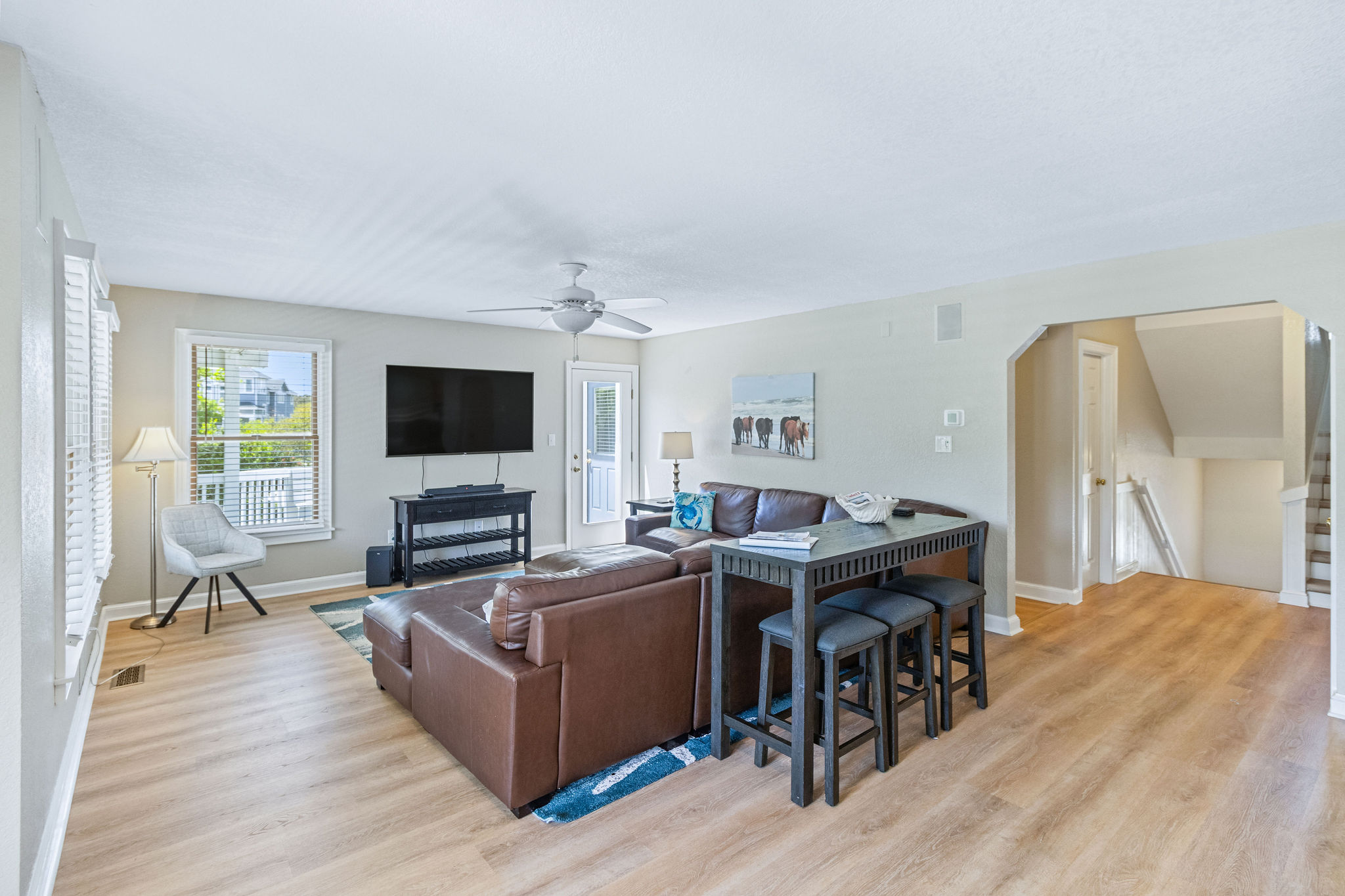 Mid Level: Living room w/large flat screen HDTV, kitchen w/breakfast bar and stainless appliances. Dining room w/table for 14. Half bath (1) Master w/king w/flat screen HDTV.