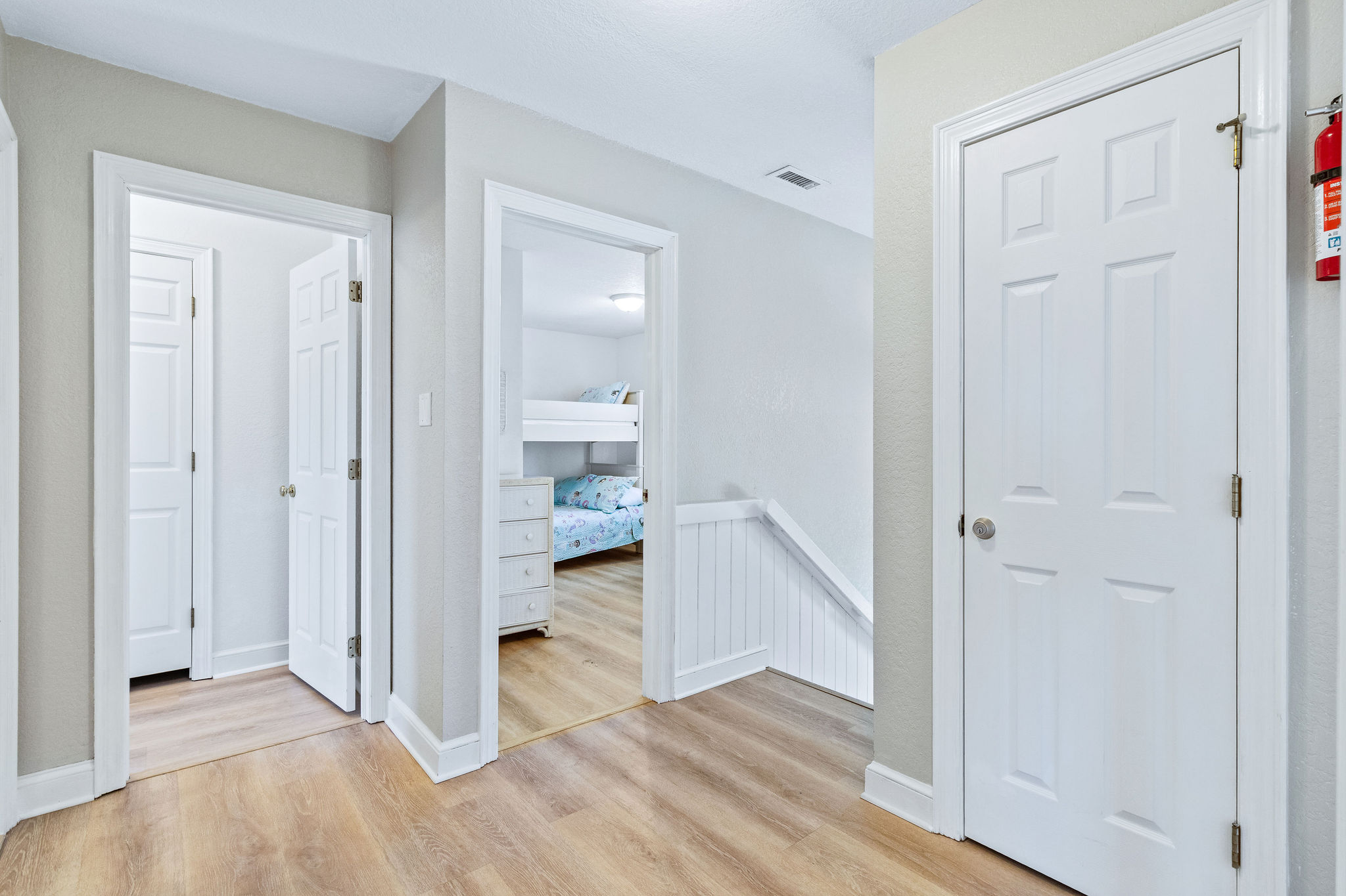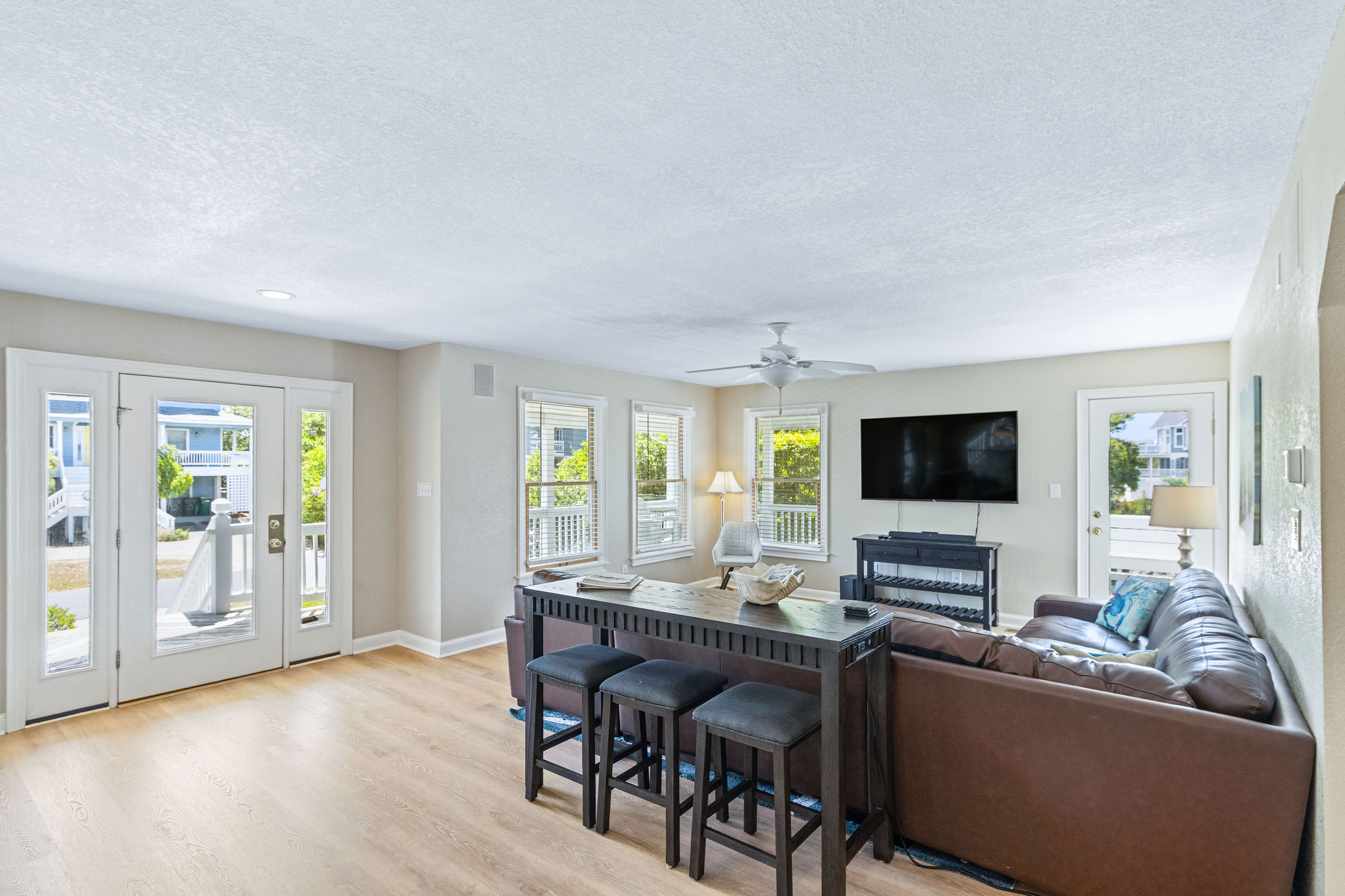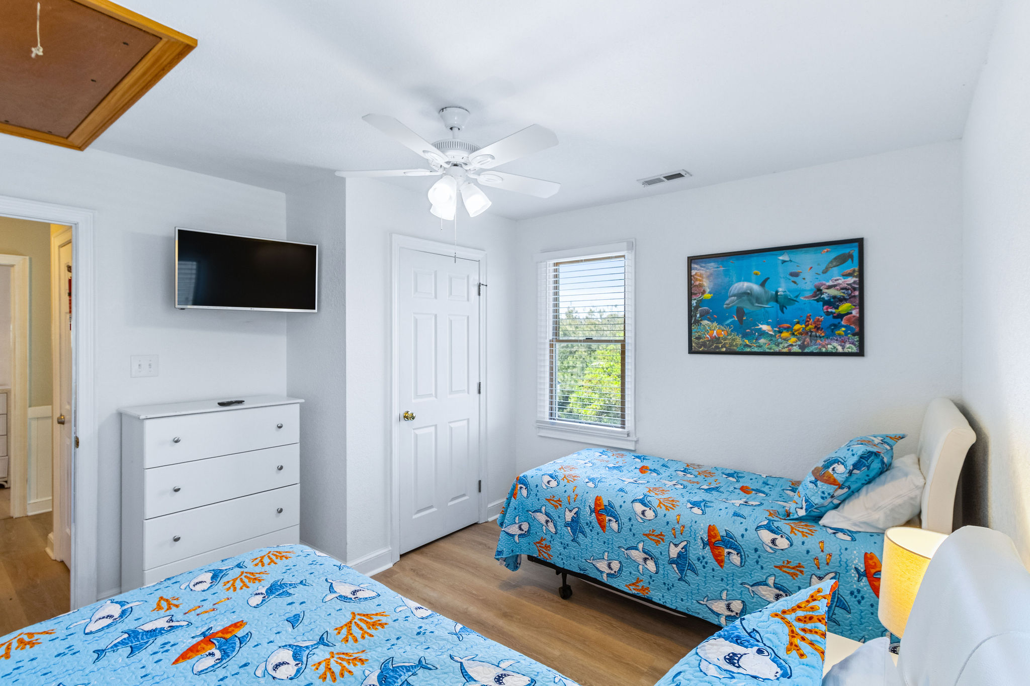 Upper Level: (1) Master w/king bedroom w/sitting area with bathroom w/tub and shower, large flat screen HDTV, (1) master w/king w/shower, flat screen HDTV, (1) bedroom w/pyramid bunk and twin w/flat screen HDTV (Smart TV only), (1) w/twins w/flat screen HDTV/ (Smart TV only), full hall bath w/tub and shower. Ocean Views from the top deck!