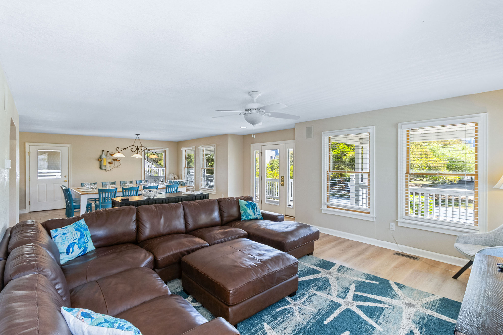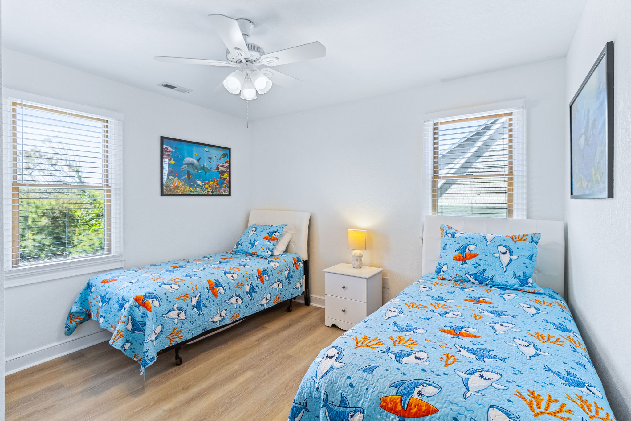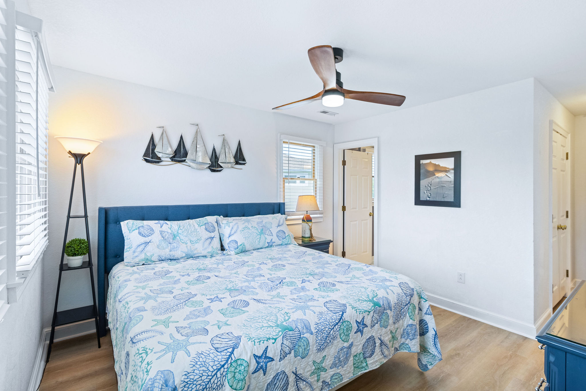 Upper Level: (1) Master w/king bedroom w/sitting area with bathroom w/tub and shower, large flat screen HDTV, (1) master w/king w/shower, flat screen HDTV, (1) bedroom w/pyramid bunk and twin w/flat screen HDTV (Smart TV only), (1) w/twins w/flat screen HDTV/ (Smart TV only), full hall bath w/tub and shower. Ocean Views from the top deck!