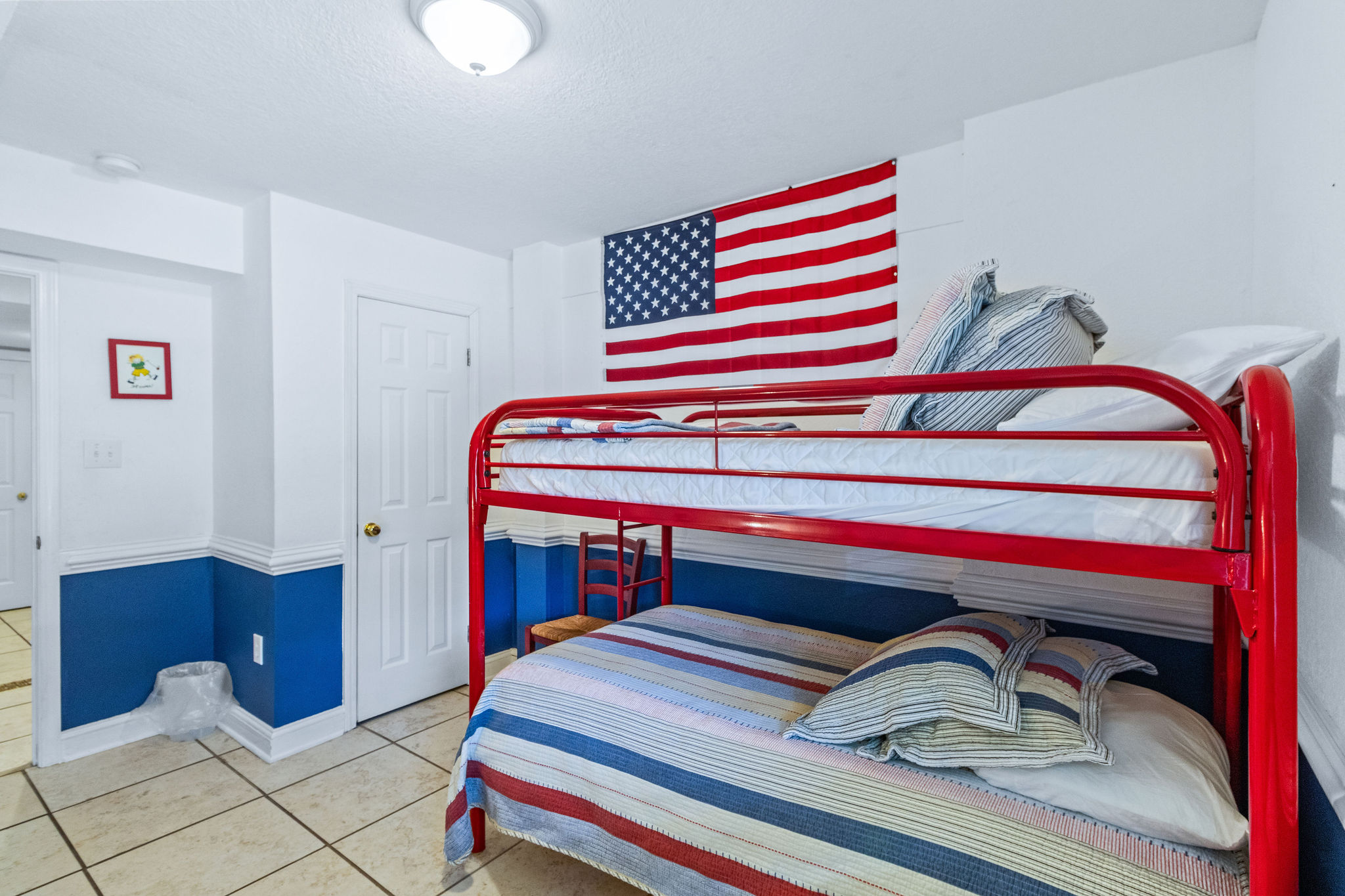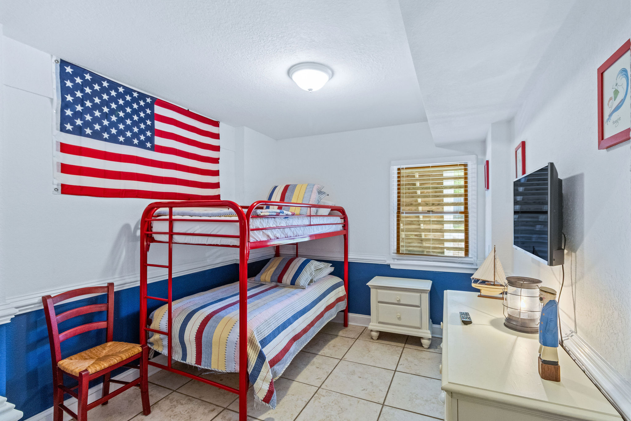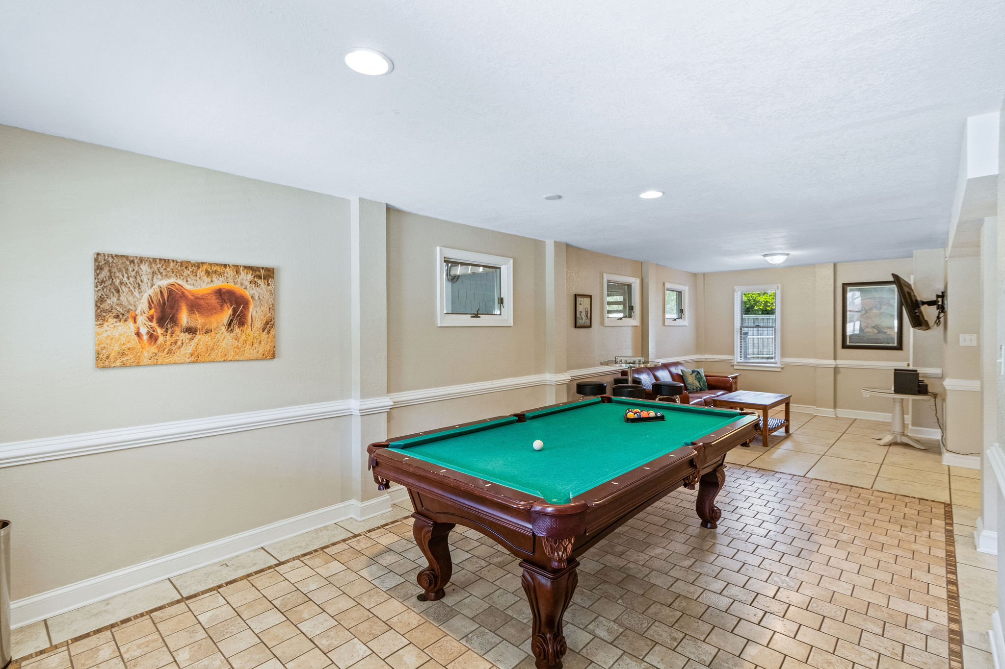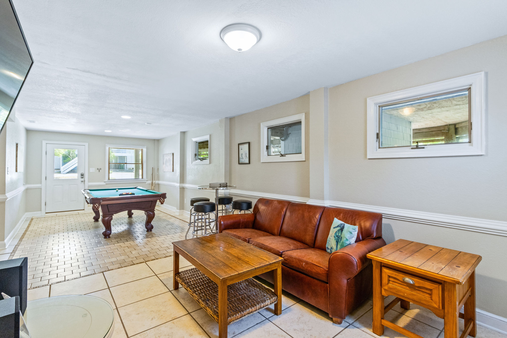 Ground Level: (1) Master w/king and private access to shared full bath w/shower, flat screen TV. One (1) bedroom w/bunk set (no cable). game/rec Room w/flat screen HDTV, pool table, refrigerator, washer and dryer.