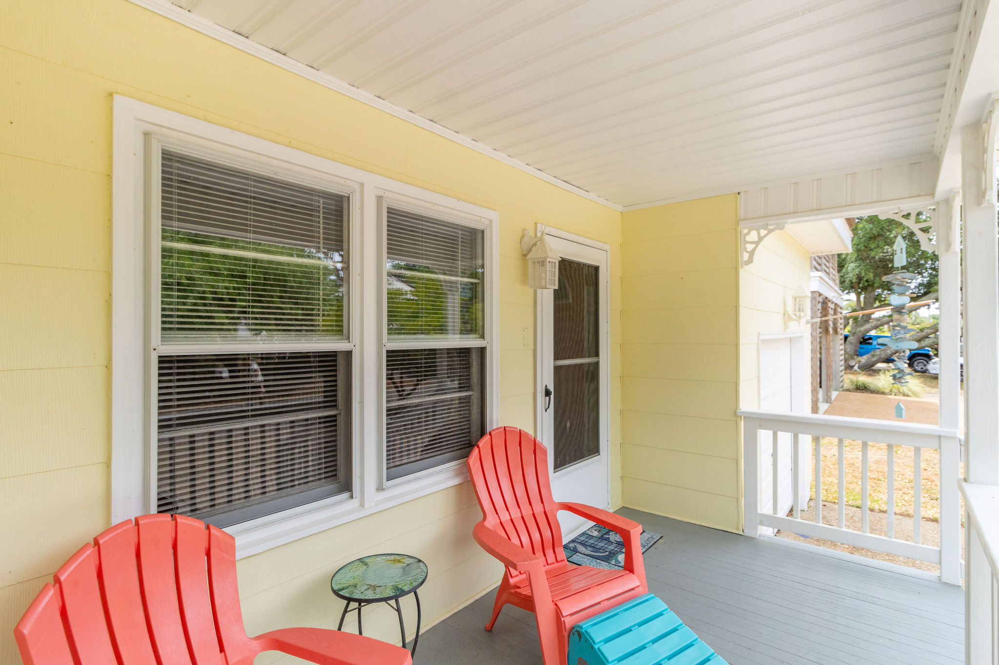 Outside: Parking, Front Porch, Screened Porch in Rear with seating, Propane Fire Pit, and chairs